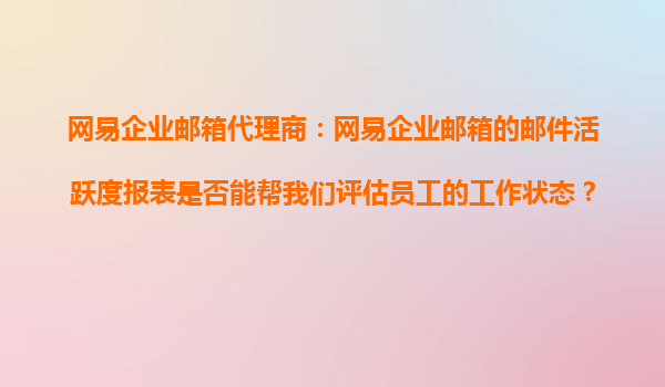 2025-10-19網(wǎng)易企業(yè)郵箱代理商:網(wǎng)易企業(yè)郵箱的郵件活躍度報(bào)表是否能幫我們?cè)u(píng)估員工的工作狀態(tài)? 引言 在當(dāng)今高度數(shù)字化的企業(yè)環(huán)境中,有效的溝通對(duì)于企業(yè)運(yùn)營至關(guān)重要。郵件作為企業(yè)內(nèi)部和外部溝通的核心工具之一,...