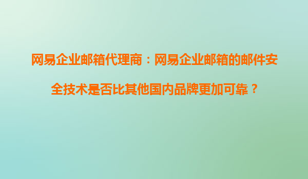 4008-020-360 網(wǎng)易企業(yè)郵箱代理商:網(wǎng)易企業(yè)郵箱的郵件安全技術(shù)是否比其他國內(nèi)品牌更加可靠? 在當(dāng)今數(shù)字化時(shí)代,企業(yè)郵箱不僅是溝通的重要工具,更是企業(yè)數(shù)據(jù)和商業(yè)機(jī)密的核心載體。郵件安全技術(shù)直接關(guān)系到企業(yè)的信息安全和運(yùn)營...