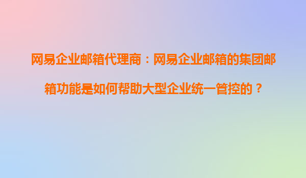2025-10-18網(wǎng)易企業(yè)郵箱集團(tuán)郵箱功能如何助力大型企業(yè)實(shí)現(xiàn)統(tǒng)一管控 一、引言:大型企業(yè)的管理挑戰(zhàn)與需求 在數(shù)字化時(shí)代,大型企業(yè)面臨著跨地域、多部門的協(xié)同管理難題。如何高效實(shí)現(xiàn)內(nèi)部通信、數(shù)據(jù)安全及流程...