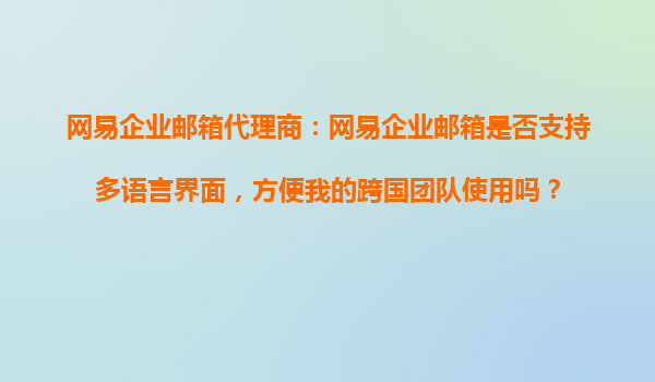 2025-10-17網(wǎng)易企業(yè)郵箱代理商:網(wǎng)易企業(yè)郵箱是否支持多語言界面,方便我的跨國團隊使用嗎? 隨著全球化進程的加速,越來越多的企業(yè)開始建立跨國團隊,語言問題成為企業(yè)選擇辦公工具時的重要考量因素。作為國內(nèi)領先的企業(yè)郵箱...