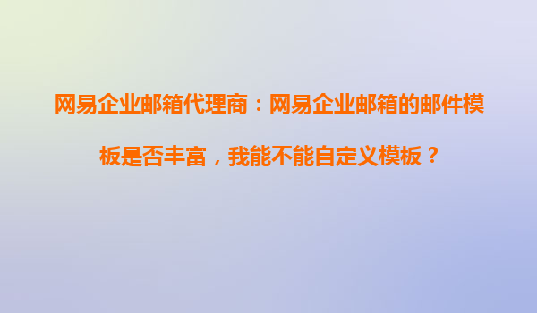 2025-10-17網(wǎng)易企業(yè)郵箱代理商:網(wǎng)易企業(yè)郵箱的郵件模板是否豐富,我能不能自定義模板? 在當今數(shù)字化辦公時代,企業(yè)郵箱作為企業(yè)與客戶、合作伙伴溝通的重要工具,其功能性和便捷性顯得尤為重要。作為國內(nèi)領先...