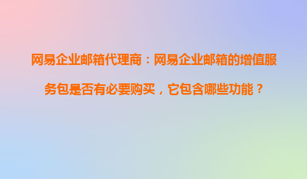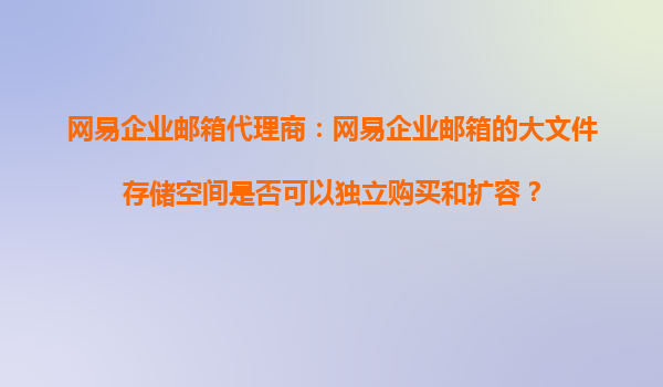 2025-10-17網(wǎng)易企業(yè)郵箱代理商:網(wǎng)易企業(yè)郵箱的大文件存儲空間是否可以獨立購買和擴容? 作為國內(nèi)領先的企業(yè)郵箱服務提供商,網(wǎng)易企業(yè)郵箱憑借其穩(wěn)定、安全、高效的特點,贏得了眾多企業(yè)的青睞。其中,大文件存...