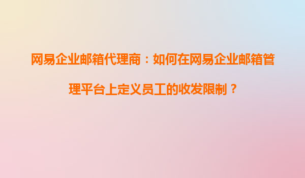 2025-10-18網(wǎng)易企業(yè)郵箱代理商:如何在管理平臺定義員工收發(fā)限制 在當今數(shù)字化辦公環(huán)境中,企業(yè)郵箱不僅是溝通工具,更是信息安全的重要保障。作為國內(nèi)領先的企業(yè)郵箱服務商,網(wǎng)易企業(yè)郵箱憑借其強大的管理功能和靈活的權(quán)...
