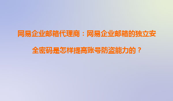 2025-10-17網(wǎng)易企業(yè)郵箱代理商:網(wǎng)易企業(yè)郵箱的獨立安全密碼是怎樣提高賬號防盜能力的? 引言 在數(shù)字化辦公時代,企業(yè)郵箱的安全性直接關(guān)系到企業(yè)數(shù)據(jù)與商業(yè)機密的保護。網(wǎng)易企業(yè)郵箱作為國內(nèi)領先的企業(yè)級郵箱服務,憑借...