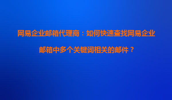 2025-10-17網(wǎng)易企業(yè)郵箱代理商:如何快速查找網(wǎng)易企業(yè)郵箱中多個關(guān)鍵詞相關(guān)的郵件? 一、企業(yè)郵件管理的痛點 在日常工作中,企業(yè)郵箱用戶常面臨海量郵件堆積的問題。尤其是需要同時查找包含多個關(guān)...