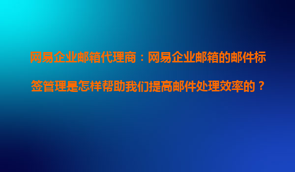 2025-10-16網(wǎng)易企業(yè)郵箱代理商:網(wǎng)易企業(yè)郵箱的郵件標簽管理是怎樣幫助我們提高郵件處理效率的? 在當今快節(jié)奏的職場環(huán)境中,高效的郵件處理已成為企業(yè)日常運營的關(guān)鍵環(huán)節(jié)。作為網(wǎng)易企業(yè)郵箱的資深代理商,我們深刻體...
