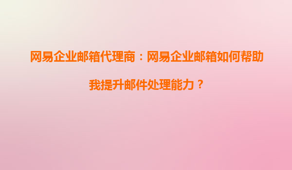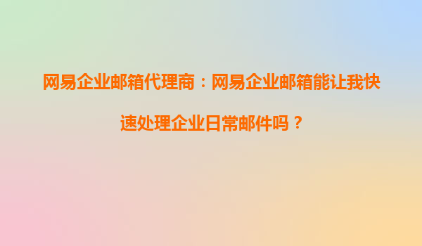 2025-10-16網易企業(yè)郵箱代理商:網易企業(yè)郵箱能讓我快速處理企業(yè)日常郵件嗎? 一、標題解析與核心需求 標題中的核心問題聚焦于“快速處理企業(yè)日常郵件”,這反映了企業(yè)對高效溝通工具的迫切需求。網易企業(yè)郵箱作為專...