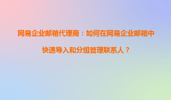 2025-10-16網易企業(yè)郵箱代理商:如何在網易企業(yè)郵箱中快速導入和分組管理聯(lián)系人? 網易企業(yè)郵箱作為國內領先的企業(yè)級郵件服務提供商,一直以其穩(wěn)定的性能、高效的協(xié)作工具和便捷的管理功能受到企業(yè)用戶的青睞。作為網易企...