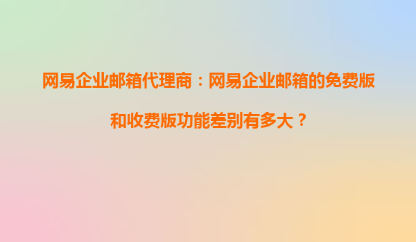 2025-10-16網易企業(yè)郵箱代理商:網易企業(yè)郵箱的免費版和收費版功能差別有多大? 一、網易企業(yè)郵箱概述 網易企業(yè)郵箱作為國內領先的企業(yè)級郵箱服務提供商,憑借其穩(wěn)定的技術架構、安全的郵件傳輸以及豐富的功能模塊,深受企...