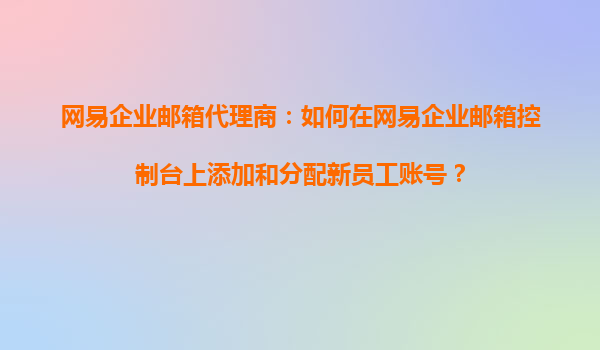 2025-10-16網易企業(yè)郵箱代理商:如何在網易企業(yè)郵箱控制臺上添加和分配新員工賬號? 一、網易企業(yè)郵箱的競爭優(yōu)勢 網易企業(yè)郵箱作為國內領先的企業(yè)通信解決方案,憑借以下優(yōu)勢成為眾多企業(yè)的首選: 高安...