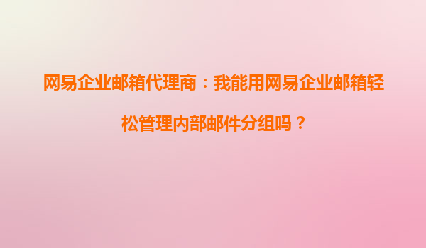 2025-10-16網易企業(yè)郵箱代理商解答:輕松管理內部郵件分組的秘訣 在現代企業(yè)管理中,高效的內部溝通是提升工作效率的關鍵。網易企業(yè)郵箱作為國內領先的企業(yè)郵箱服務提供商,憑借其強大的功能和易用性,成為眾多企業(yè)的首選。許...