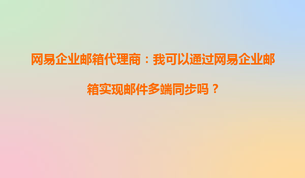 2025-10-14網(wǎng)易企業(yè)郵箱代理商:我可以通過網(wǎng)易企業(yè)郵箱實現(xiàn)郵件多端同步嗎? 在現(xiàn)代商務(wù)環(huán)境中,高效的郵件服務(wù)是企業(yè)溝通不可或缺的一部分。隨著移動辦公的普及,多端同步功能成為企業(yè)郵箱的重要需求之一。網(wǎng)...