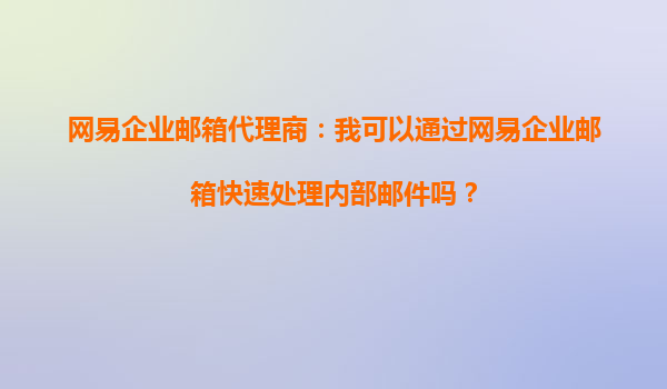 2025-10-14網(wǎng)易企業(yè)郵箱代理商:我可以通過網(wǎng)易企業(yè)郵箱快速處理內(nèi)部郵件嗎? 一、網(wǎng)易企業(yè)郵箱的核心優(yōu)勢 網(wǎng)易企業(yè)郵箱作為國內(nèi)領(lǐng)先的企業(yè)級郵件服務(wù)解決方案,憑借其高性能、安全性及豐富的功能,已成為眾多企...