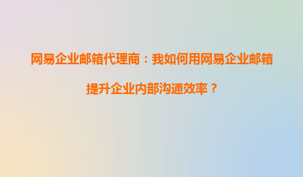 2025-10-14網(wǎng)易企業(yè)郵箱代理商:我如何用網(wǎng)易企業(yè)郵箱提升企業(yè)內(nèi)部溝通效率? 在數(shù)字化辦公時代,高效的企業(yè)內(nèi)部溝通是推動業(yè)務(wù)發(fā)展的關(guān)鍵。作為網(wǎng)易企業(yè)郵箱的代理商,我深刻體會到這款產(chǎn)品如何幫助企業(yè)優(yōu)化溝通流程...