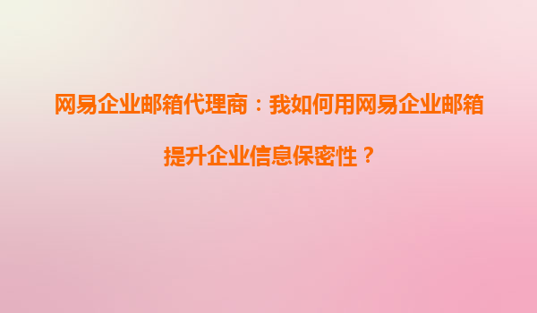 2025-10-13網(wǎng)易企業(yè)郵箱代理商:我如何用網(wǎng)易企業(yè)郵箱提升企業(yè)信息保密性? 引言 在數(shù)字化時代,企業(yè)信息安全成為重中之重。作為網(wǎng)易企業(yè)郵箱的代理商,我們深知信息安全對企業(yè)的重要性。本文將詳細介紹如何...