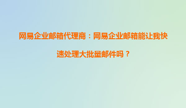 2025-10-14網(wǎng)易企業(yè)郵箱代理商:網(wǎng)易企業(yè)郵箱能讓我快速處理大批量郵件嗎? 一、高效處理大批量郵件的需求 在當今快節(jié)奏的商業(yè)環(huán)境中,企業(yè)每天都需要處理大量的電子郵件。無論是客戶溝通、內(nèi)部協(xié)作還是市場推廣...