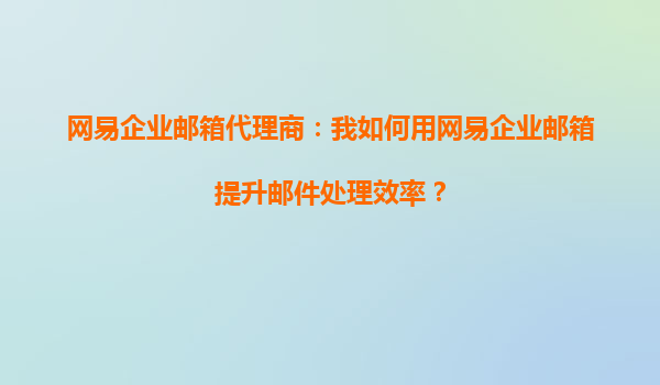 4008-020-360 網(wǎng)易企業(yè)郵箱代理商:我如何用網(wǎng)易企業(yè)郵箱提升郵件處理效率? 一、網(wǎng)易企業(yè)郵箱的核心優(yōu)勢 網(wǎng)易企業(yè)郵箱作為國內(nèi)領(lǐng)先的企業(yè)級郵件服務(wù)提供商,具備以下核心優(yōu)勢: 1.高穩(wěn)定性與安全性:采用分布式...