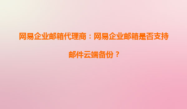 2025-10-05網(wǎng)易企業(yè)郵箱代理商解析:網(wǎng)易企業(yè)郵箱是否支持郵件云端備份? 一、網(wǎng)易企業(yè)郵箱的云端備份功能 網(wǎng)易企業(yè)郵箱作為國(guó)內(nèi)領(lǐng)先的企業(yè)級(jí)郵件服務(wù)提供商,其核心功能...