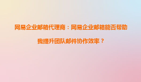 2025-10-05網(wǎng)易企業(yè)郵箱代理商:網(wǎng)易企業(yè)郵箱能否幫助我提升團(tuán)隊(duì)郵件協(xié)作效率? 一、網(wǎng)易企業(yè)郵箱的核心優(yōu)勢(shì) 網(wǎng)易企業(yè)郵箱作為國(guó)內(nèi)領(lǐng)先的企業(yè)級(jí)郵件服務(wù)提供商,憑借其穩(wěn)定、安全、高效的特點(diǎn),成為眾多企業(yè)的首選。...