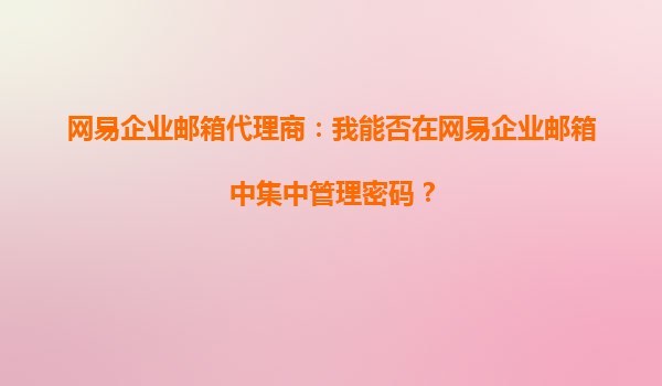 2025-09-28網(wǎng)易企業(yè)郵箱代理商:我能否在網(wǎng)易企業(yè)郵箱中集中管理密碼? 一、網(wǎng)易企業(yè)郵箱的密碼管理功能概述 作為國(guó)內(nèi)領(lǐng)先的企業(yè)郵箱服務(wù)提供商,網(wǎng)易企業(yè)郵箱為企業(yè)用戶提供了全面的密碼管理解決方案。通過(guò)管理員后...