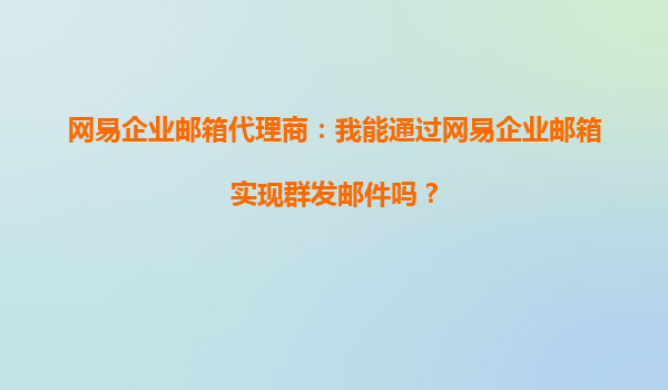 2025-09-20網(wǎng)易企業(yè)郵箱高效群發(fā)功能解析 專業(yè)的郵件群發(fā)解決方案 作為國內(nèi)領先的企業(yè)通信服務提供商,網(wǎng)易企業(yè)郵箱針對企業(yè)用戶的郵件群發(fā)需求,提供了專業(yè)而全面的解決方案。通過網(wǎng)易企業(yè)郵箱代理商開通的...