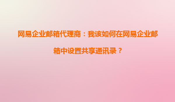 2025-09-20網(wǎng)易企業(yè)郵箱代理商指南:如何高效設置共享通訊錄 一、共享通訊錄的重要性 在企業(yè)日常運營中,高效的內(nèi)部溝通是提升協(xié)作效率的關鍵。網(wǎng)易企業(yè)郵箱的共享通訊錄功能允許企業(yè)成員快速查找同事、部門...