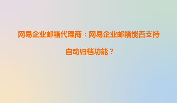 2025-09-20網(wǎng)易企業(yè)郵箱的自動歸檔功能解析 網(wǎng)易企業(yè)郵箱作為國內(nèi)領先的企業(yè)郵件服務提供商之一,憑借其強大的功能和穩(wěn)定的性能,深受企業(yè)用戶的青睞。其中,自動歸檔功能是許多企業(yè)關注的重點之一。那么,網(wǎng)易企業(yè)郵箱是否支...