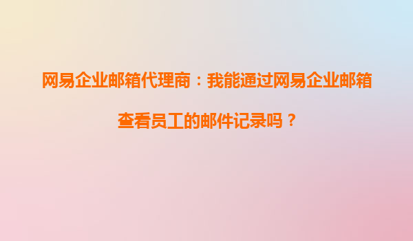 2025-09-20網(wǎng)易企業(yè)郵箱代理商:我能通過網(wǎng)易企業(yè)郵箱查看員工的郵件記錄嗎? 在現(xiàn)代企業(yè)管理中,電子郵件作為重要的溝通工具之一,承載了大量的商業(yè)信息和機密數(shù)據(jù)。因此,許多企業(yè)管理者或IT負責人常常會思考一個問題:作...