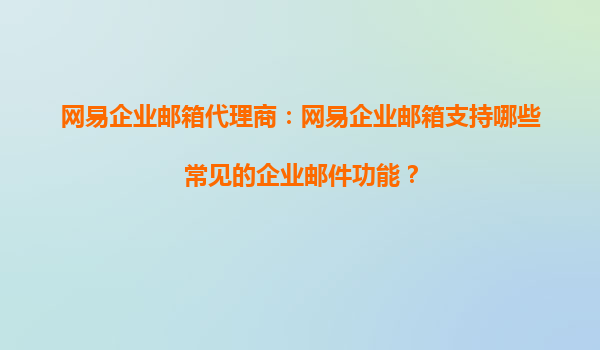2025-09-18網(wǎng)易企業(yè)郵箱代理商:網(wǎng)易企業(yè)郵箱支持哪些常見的企業(yè)郵件功能? 在當(dāng)今數(shù)字化時(shí)代,企業(yè)郵箱不僅是溝通的工具,更是企業(yè)形象和專業(yè)度的體現(xiàn)。網(wǎng)易企業(yè)郵箱作為國內(nèi)領(lǐng)先的企業(yè)郵箱服務(wù)商,憑借其穩(wěn)定、安全、高效的...