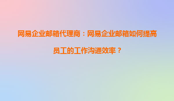 2025-09-16網(wǎng)易企業(yè)郵箱代理商:網(wǎng)易企業(yè)郵箱如何提高員工的工作溝通效率? 一、引言 在現(xiàn)代企業(yè)中,高效的工作溝通是實(shí)現(xiàn)業(yè)務(wù)目標(biāo)的核心要素之一。網(wǎng)易企業(yè)郵箱作為國內(nèi)領(lǐng)先的企業(yè)級郵箱服務(wù),憑借其穩(wěn)定的架...