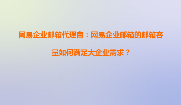2025-09-16網(wǎng)易企業(yè)郵箱代理商:網(wǎng)易企業(yè)郵箱的郵箱容量如何滿足大企業(yè)需求? 隨著企業(yè)數(shù)字化進(jìn)程的加速,企業(yè)郵箱已成為日常辦公不可或缺的工具。對于員工眾多、業(yè)務(wù)復(fù)雜的大型企業(yè)而言,郵箱容量、穩(wěn)...