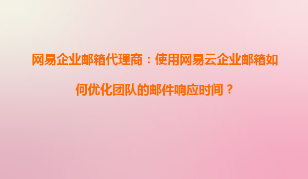 4008-020-360 網(wǎng)易企業(yè)郵箱代理商:使用網(wǎng)易云企業(yè)郵箱如何優(yōu)化團(tuán)隊(duì)的郵件響應(yīng)時(shí)間? 在當(dāng)今快節(jié)奏的商業(yè)環(huán)境中,高效的郵件溝通是企業(yè)運(yùn)營(yíng)的基礎(chǔ)。作為國(guó)內(nèi)領(lǐng)先的企業(yè)郵箱服務(wù)商,網(wǎng)易企業(yè)郵箱為企業(yè)提供安全穩(wěn)定的郵件解決方...