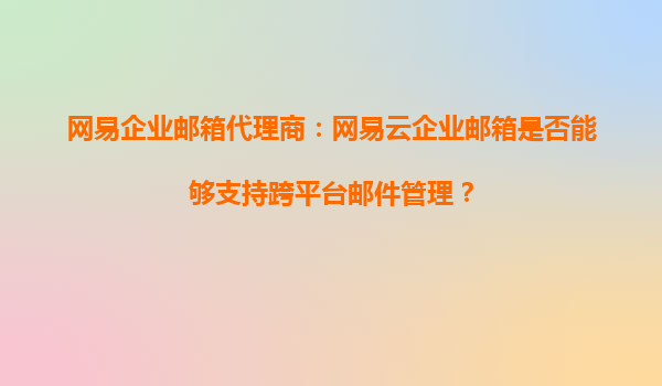 2025-09-04網(wǎng)易云企業(yè)郵箱的跨平臺(tái)郵件管理能力 隨著企業(yè)數(shù)字化轉(zhuǎn)型的加速,高效的郵件管理成為企業(yè)日常運(yùn)營(yíng)中不可或缺的一部分。網(wǎng)易云企業(yè)郵箱作為網(wǎng)易企業(yè)郵箱代理商力推的產(chǎn)品,憑借其強(qiáng)大的跨平臺(tái)兼容性和卓越的功能表現(xiàn)...