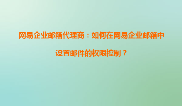 2025-09-03網(wǎng)易企業(yè)郵箱代理商:如何在網(wǎng)易企業(yè)郵箱中設(shè)置郵件的權(quán)限控制? 在現(xiàn)代企業(yè)中,郵件作為日常溝通與協(xié)作的重要工具,其安全性、靈活性和管理便捷性尤為重要。網(wǎng)易企業(yè)郵箱憑借強(qiáng)大的功能和穩(wěn)定的服務(wù),成為許多企業(yè)...