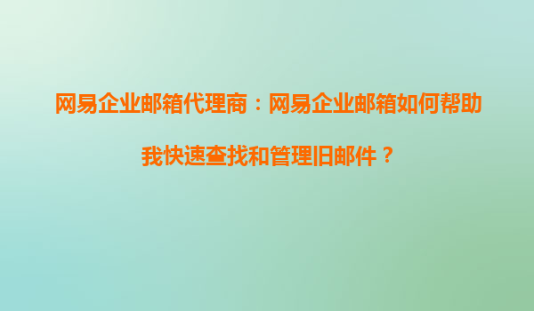 2025-09-03網(wǎng)易企業(yè)郵箱代理商:網(wǎng)易企業(yè)郵箱如何幫助我快速查找和管理舊郵件? 在日常工作中,郵件的數(shù)量往往隨著業(yè)務(wù)的發(fā)展而迅速增長(zhǎng)。尤其是對(duì)于那些使用企業(yè)郵箱多年的用戶(hù)來(lái)說(shuō),如何高效地查找和管理舊郵...