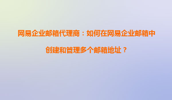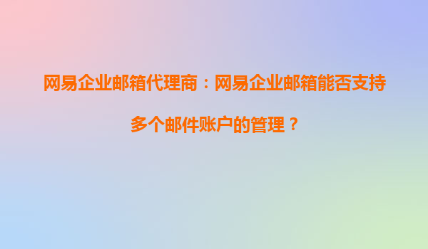 2025-09-02網(wǎng)易企業(yè)郵箱代理商:網(wǎng)易企業(yè)郵箱能否支持多個郵件賬戶的管理? 一、網(wǎng)易企業(yè)郵箱的多賬戶管理能力 作為國內(nèi)領(lǐng)先的企業(yè)級郵箱服務(wù)提供商,網(wǎng)易企業(yè)郵箱通過專...