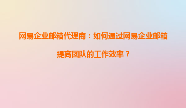 2025-09-01網(wǎng)易企業(yè)郵箱代理商:如何通過網(wǎng)易企業(yè)郵箱提高團(tuán)隊的工作效率? 導(dǎo)語 在企業(yè)數(shù)字化轉(zhuǎn)型的浪潮中,高效的溝通與協(xié)作工具是提升團(tuán)隊生產(chǎn)力的核心。網(wǎng)易企業(yè)郵箱作為國內(nèi)...