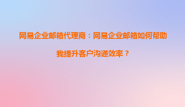 2025-09-02網(wǎng)易企業(yè)郵箱代理商:網(wǎng)易企業(yè)郵箱如何幫助我提升客戶溝通效率? 一、網(wǎng)易企業(yè)郵箱的核心優(yōu)勢 作為國內(nèi)領(lǐng)先的企業(yè)郵箱服務(wù)商,網(wǎng)易企業(yè)郵箱憑借以下核心功能為企業(yè)的客戶溝通效率帶來顯著提升: ...