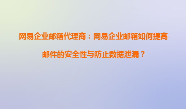 2025-09-02網(wǎng)易企業(yè)郵箱代理商:網(wǎng)易企業(yè)郵箱如何提高郵件的安全性與防止數(shù)據(jù)泄漏? 在數(shù)字化時代,企業(yè)通信的安全性至關(guān)重要。電子郵件作為企業(yè)日常溝通的主要工具,其安全性直接關(guān)系到企業(yè)數(shù)據(jù)的保護(hù)。網(wǎng)易企業(yè)郵...