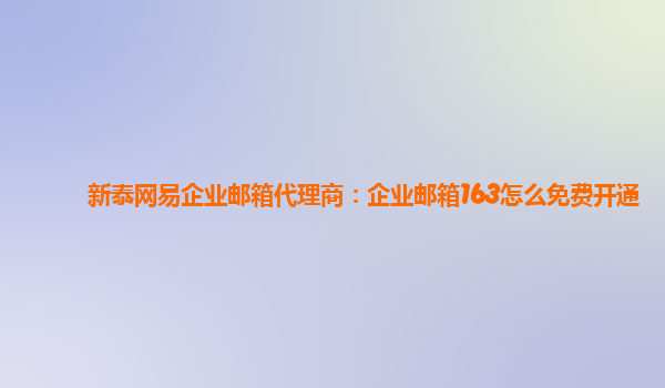 2024-01-16新泰網(wǎng)易企業(yè)郵箱代理商:免費(fèi)開(kāi)通企業(yè)郵箱163 1.什么是網(wǎng)易企業(yè)郵箱? 網(wǎng)易企業(yè)郵箱是基于云計(jì)算技術(shù)的企業(yè)級(jí)電子郵件系統(tǒng),為企業(yè)提供安全穩(wěn)定、功能強(qiáng)大的電子郵件解決方案。 2.如何免費(fèi)開(kāi)通企業(yè)郵箱163? 開(kāi)...