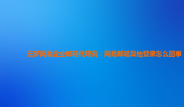 2024-01-13云夢網(wǎng)易企業(yè)郵箱代理商:網(wǎng)易郵箱異地登錄怎么回事 1.什么是網(wǎng)易企業(yè)郵箱異地登錄 網(wǎng)易企業(yè)郵箱是一款功能強大的企業(yè)郵件服務(wù),可以方便企業(yè)進行郵件收發(fā)、日程安排、任務(wù)分配等工作。異地登錄是指用戶在不同的地...