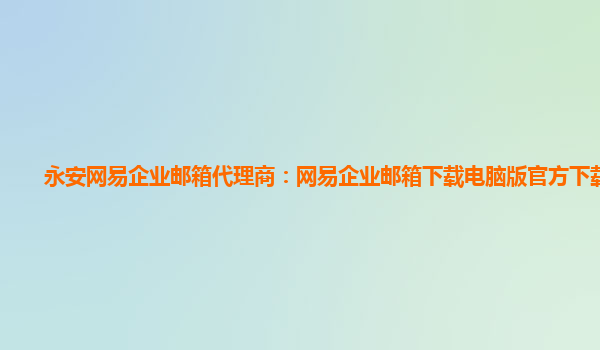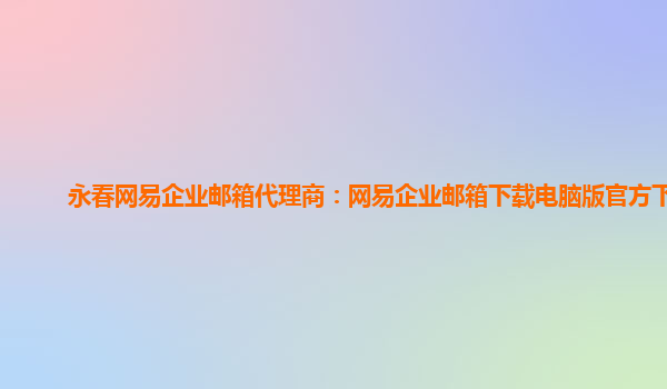2024-01-10網(wǎng)易企業(yè)郵箱下載電腦版官方下載 作為永春網(wǎng)易企業(yè)郵箱的代理商,我們非常榮幸能夠?yàn)閺V大企業(yè)客戶提供優(yōu)質(zhì)的企業(yè)郵箱服務(wù)。在這篇文章中,我們將介紹網(wǎng)易企業(yè)郵箱的優(yōu)勢(shì),并分享使用企業(yè)郵箱后的感受。 網(wǎng)易企業(yè)郵...