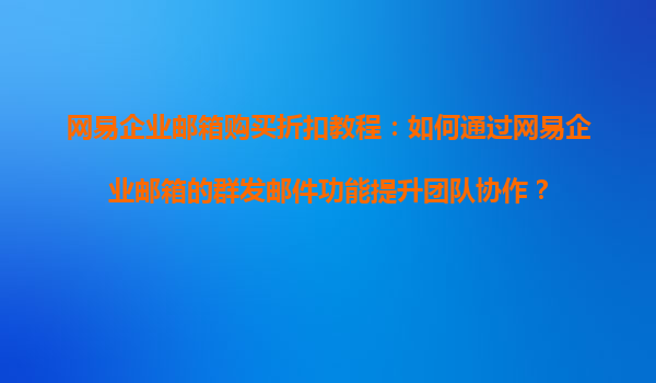 2025-08-20網易企業(yè)郵箱購買折扣教程:如何通過網易企業(yè)郵箱的群發(fā)郵件功能提升團隊協(xié)作? 在當今快節(jié)奏的職場環(huán)境中,高效的團隊協(xié)作是企業(yè)成功的關鍵。而企業(yè)郵箱作為日常溝通的重要工具,其性能和功能直接影...