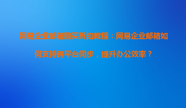 2025-08-20網易企業(yè)郵箱購買折扣教程:網易企業(yè)郵箱如何支持跨平臺同步,提升辦公效率? 在當今快節(jié)奏的數(shù)字化辦公環(huán)境中,選擇一個穩(wěn)定、高效且支持跨平臺同步的企業(yè)郵箱服務顯得尤為重要。網易企業(yè)郵箱作為國內領先的企業(yè)...