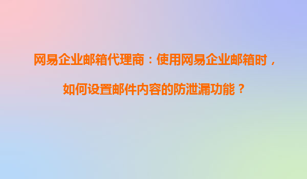 2025-08-20網易企業(yè)郵箱代理商:如何設置郵件內容的防泄漏功能 網易企業(yè)郵箱的安全防護優(yōu)勢 作為國內領先的企業(yè)級郵箱服務提供商,網易企業(yè)郵箱憑借其強大的安全性能和便捷的管理功能,贏得了眾多企業(yè)的信賴。其中,郵件...