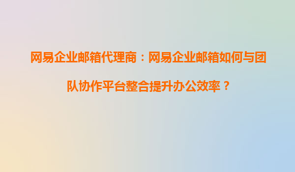 2025-08-20網易企業(yè)郵箱代理商:網易企業(yè)郵箱如何與團隊協(xié)作平臺整合提升辦公效率? 一、網易企業(yè)郵箱的核心優(yōu)勢與辦公場景痛點 作為國內領先的企業(yè)級郵件服務提供商,網易企業(yè)郵箱憑借以下優(yōu)勢成為眾多企業(yè)...