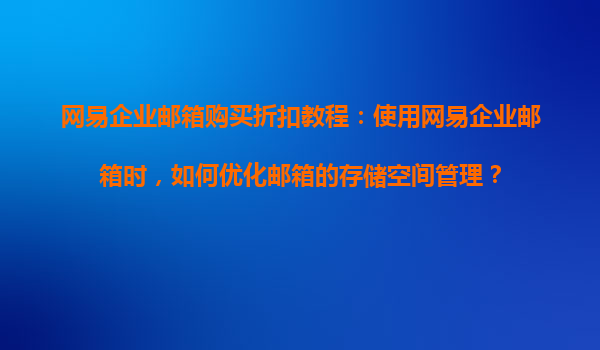 2025-08-20網易企業(yè)郵箱購買折扣教程:優(yōu)化存儲空間管理 一、網易企業(yè)郵箱的優(yōu)勢與存儲管理需求 網易企業(yè)郵箱作為國內領先的企業(yè)通信解決方案,提供高穩(wěn)定性郵件服務、超大附件支持(最高3G單封郵件)、...