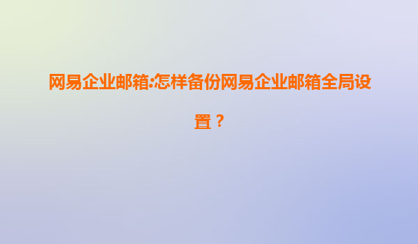 2025-08-11網(wǎng)易企業(yè)郵箱:怎樣備份網(wǎng)易企業(yè)郵箱全局設(shè)置? 一、網(wǎng)易企業(yè)郵箱的核心優(yōu)勢(shì) 網(wǎng)易企業(yè)郵箱作為國(guó)內(nèi)領(lǐng)先的企業(yè)級(jí)郵件服務(wù)提供商,憑借以下優(yōu)勢(shì)成為眾多企業(yè)的首選: 高安全性:采用SSL/TLS加密...