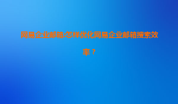 2025-08-11網(wǎng)易企業(yè)郵箱:如何優(yōu)化搜索效率 在當(dāng)今快節(jié)奏的商業(yè)環(huán)境中,高效的企業(yè)郵箱系統(tǒng)對于提升工作效率至關(guān)重要。網(wǎng)易企業(yè)郵箱作為國內(nèi)領(lǐng)先的企業(yè)郵箱服務(wù)提供商,憑借其強(qiáng)大的功能和穩(wěn)定的性能,贏得了眾多企業(yè)的青...
