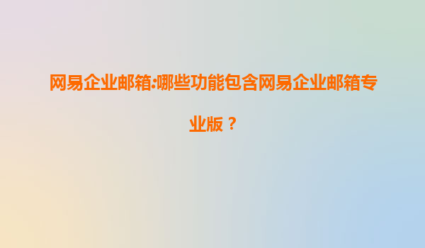 2025-08-09網(wǎng)易企業(yè)郵箱:網(wǎng)易企業(yè)郵箱能否限制郵件發(fā)送對(duì)象? 一、網(wǎng)易企業(yè)郵箱的核心優(yōu)勢(shì) 網(wǎng)易企業(yè)郵箱作為國(guó)內(nèi)領(lǐng)先的企業(yè)級(jí)郵件服務(wù)提供商,憑借其穩(wěn)定、安全、高效的特點(diǎn),贏得了眾多企業(yè)的信賴。其核心...